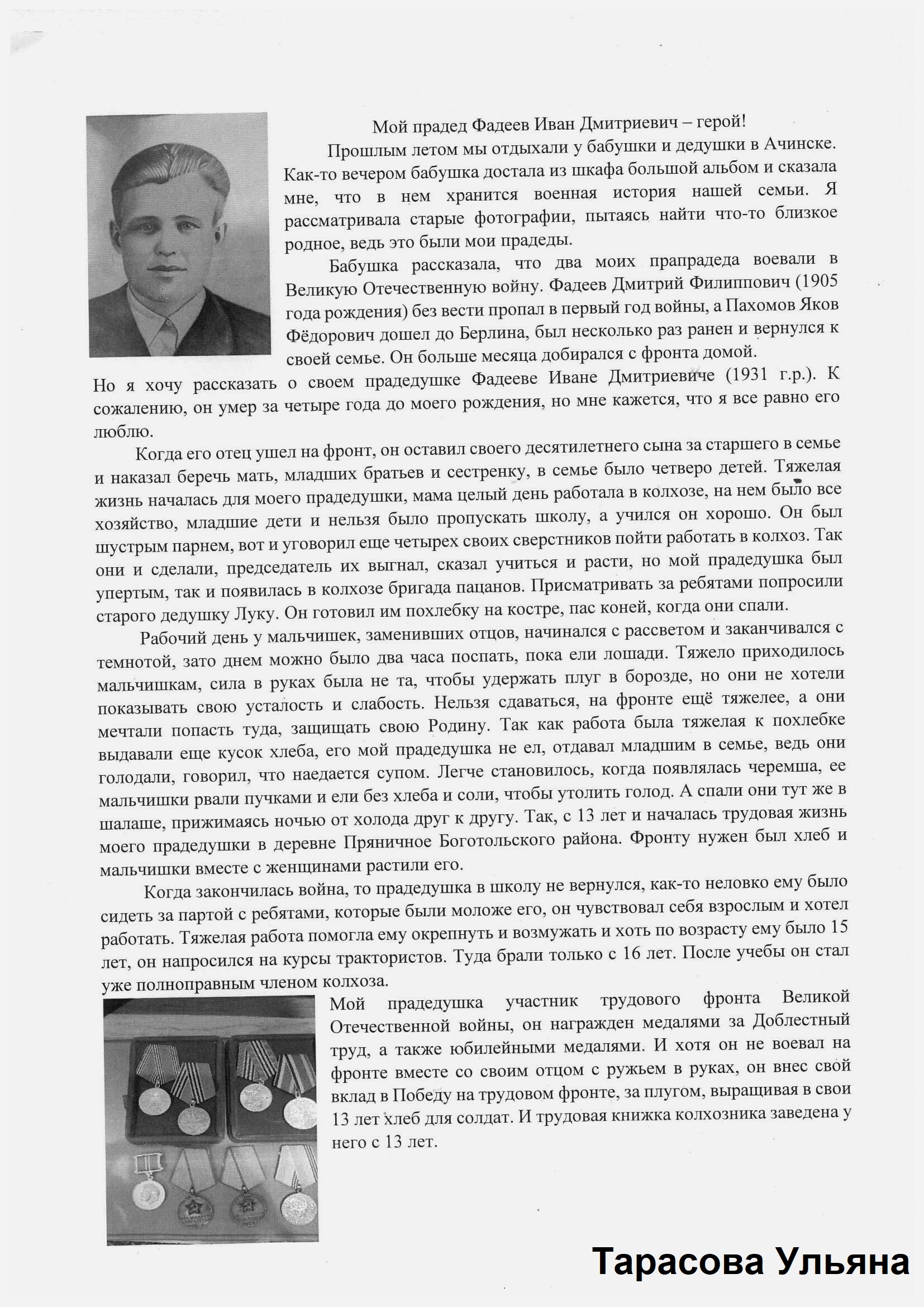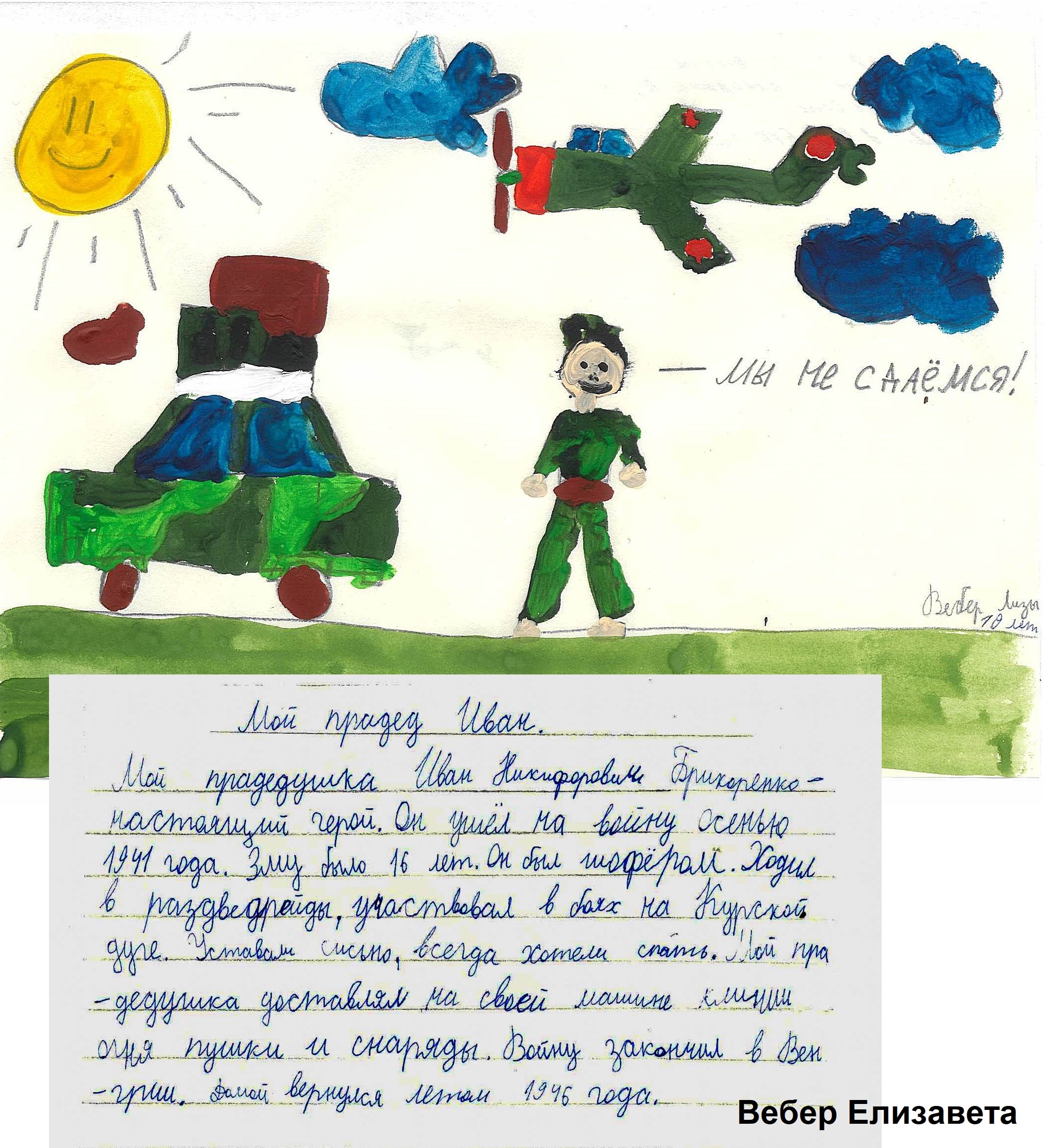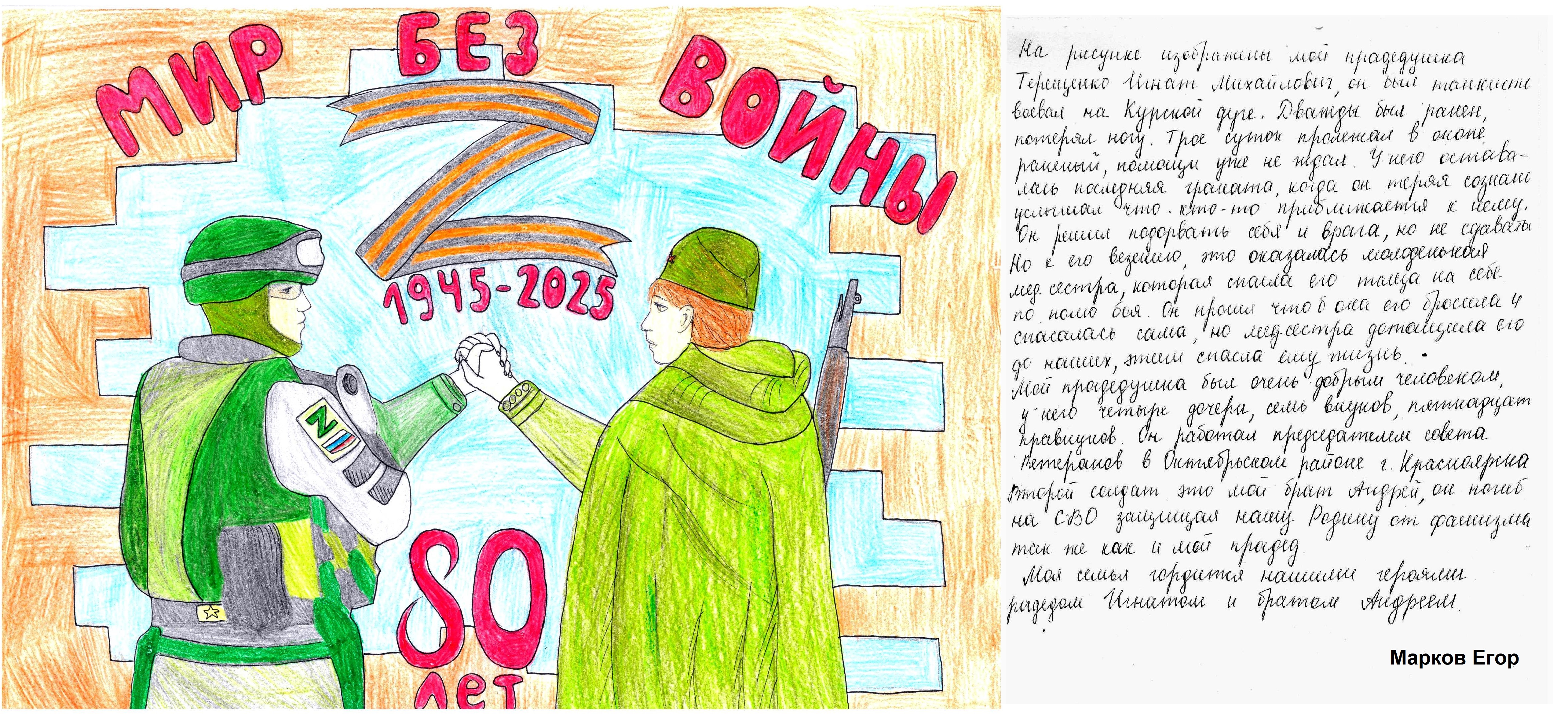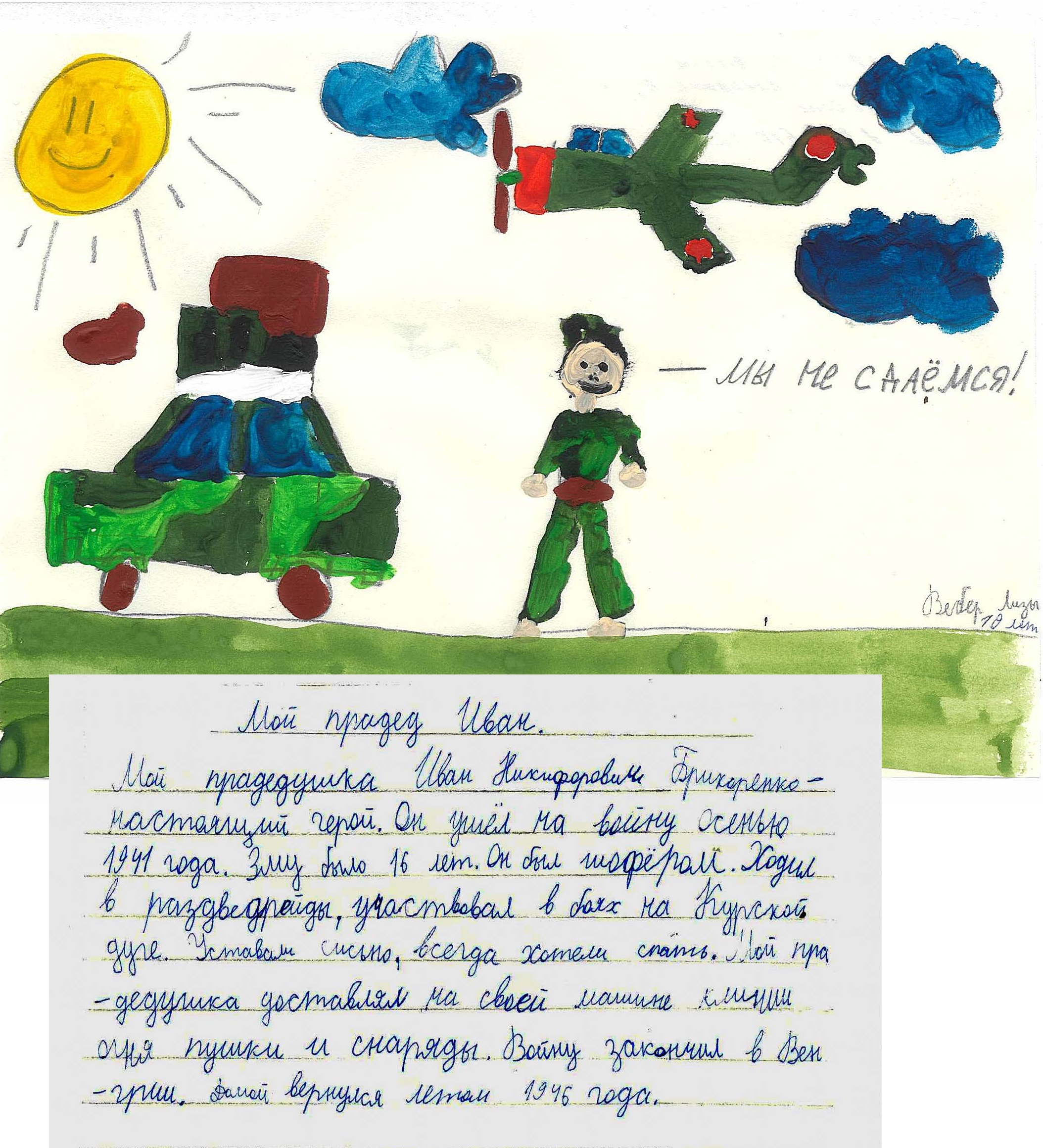В работах ребята рассказали о своих прадедах, воевавших на фронте и трудившихся в тылу, о своих браться, погибших в специальной военной операции.