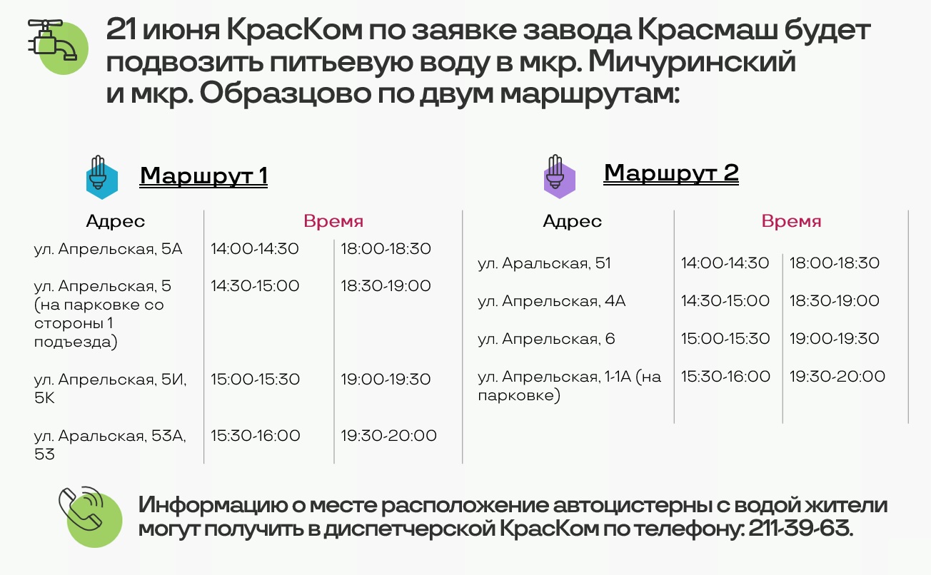 Информацию о месте расположение автоцистерны с водой жители могут уточнить завтра в диспетчерской КрасКом по телефону: 211-39-63.