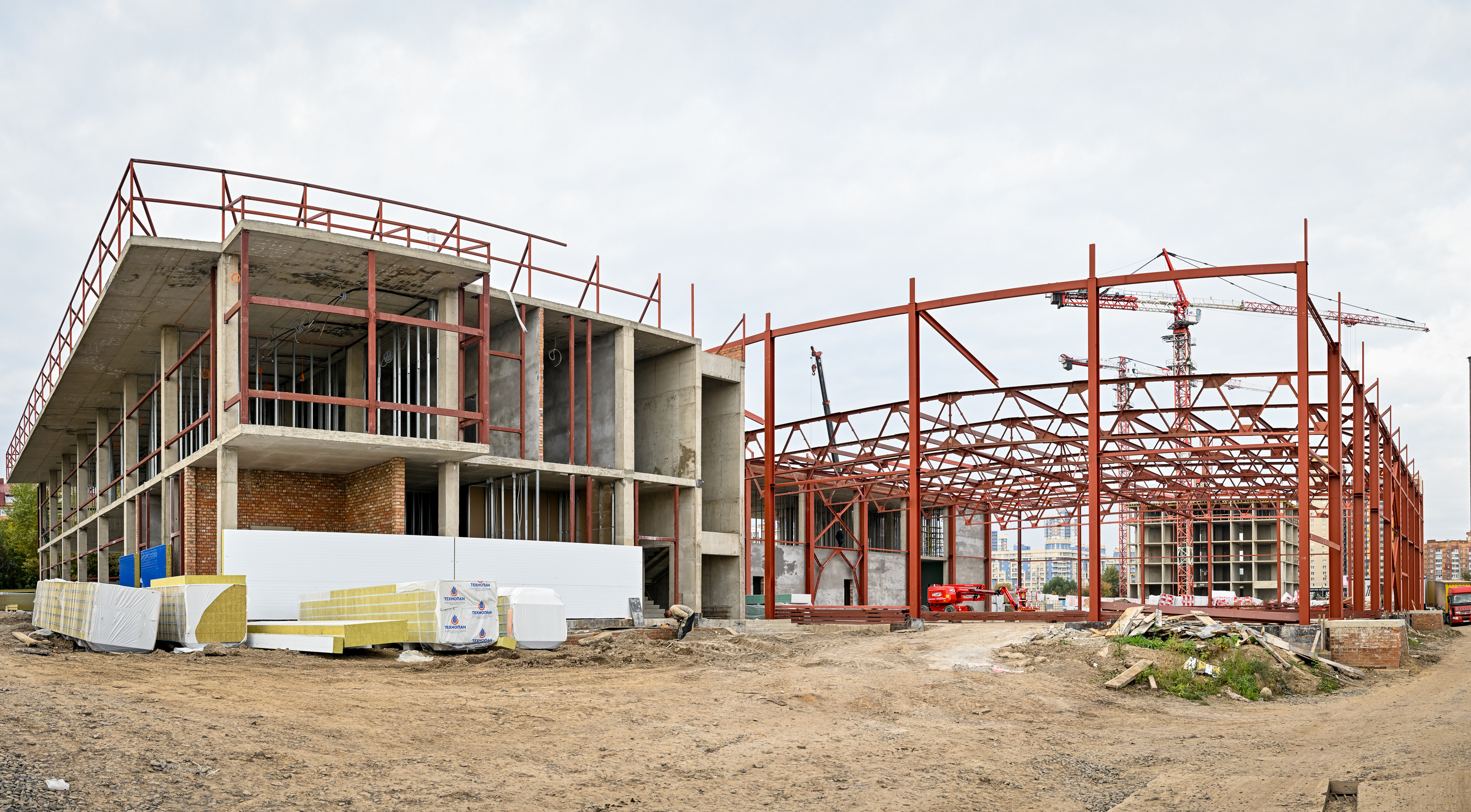 Сейчас застройщик по заказу краевого Управления капитального строительства занимается сборкой внутренних инженерных систем и перегородок между тренировочными залами, монтирует металлических перекрытий каркаса соревновательной площадки, устанавливает сэндвич-панели фасада, а также выполняет другие работы по обеспечению теплового контура здания и конструктивному обустройству помещений.