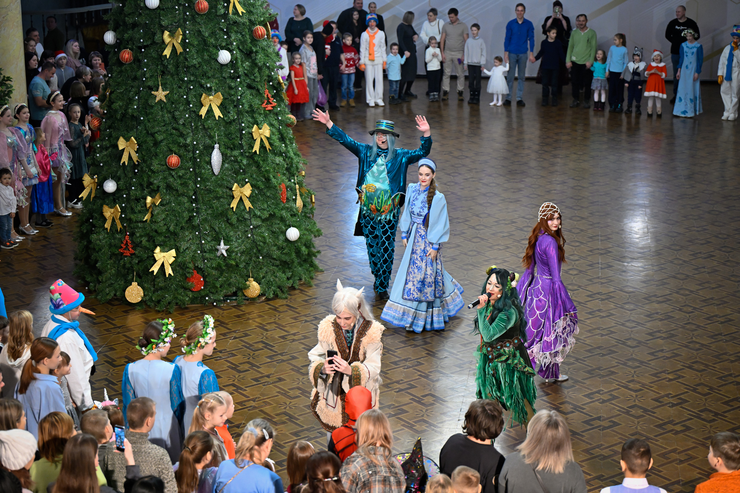 Более 200 ребятишек в сопровождении мам, пап, бабушек и дедушек стали зрителями новогоднего интерактивного спектакля «Дед Мороз и подводное царство», который для исполнили актёры Дворца труда и согласия.