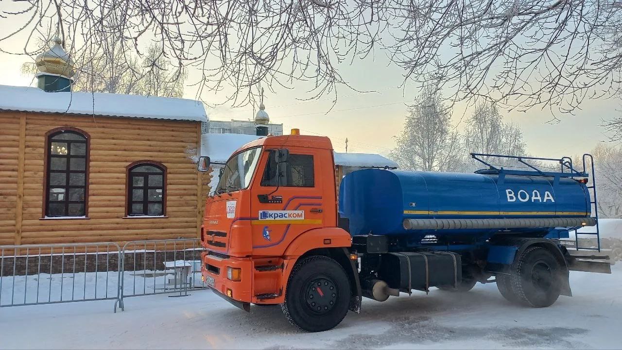 18 января КрасКом уже привез воду в Свято-Никольский храм-памятник жертв политических репрессий, где обустроена одна из четырех городских крещенских купелей.