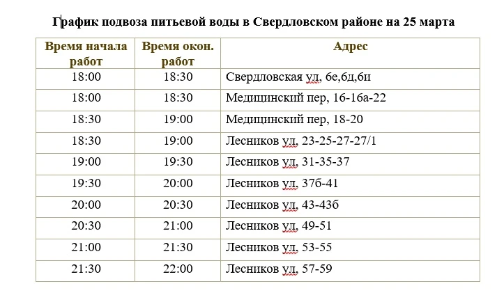 Отключение холодной воды в Свердловском районе продлено до 06:00 часов утра 26 марта