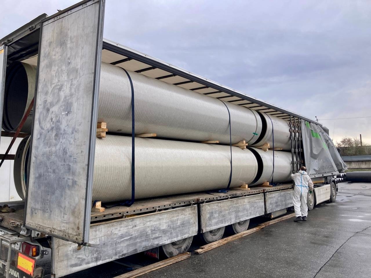Первая партия труб для замены поврежденного участка канализационного коллектора на ул. Семафорной выехала сегодня с завода-изготовителя