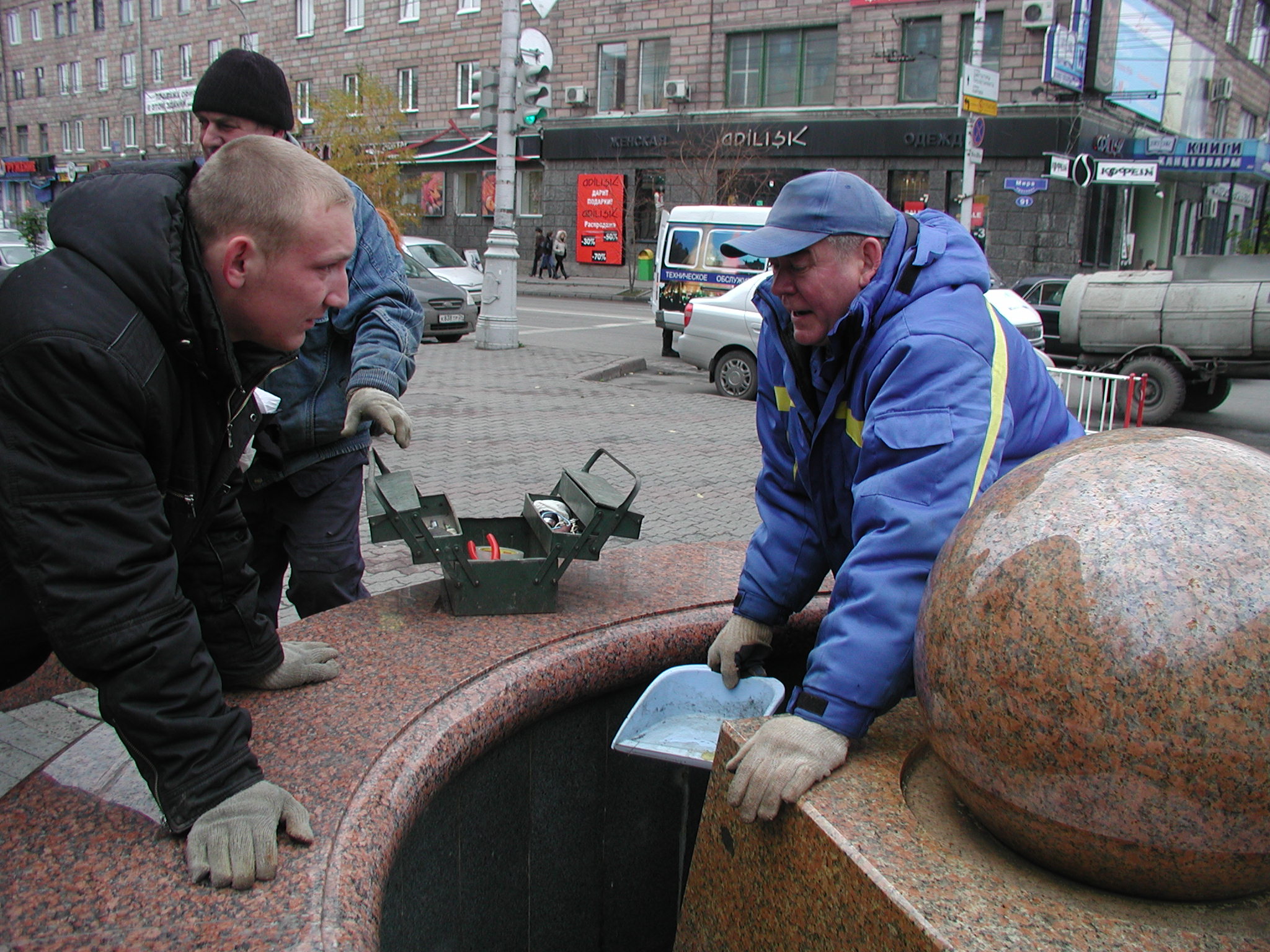 Как рассказал начальник участка по эксплуатации нестандартного оборудования компании «КрасКом» Александр Похабов, сегодня были закрыты на зиму самые популярные фонтаны Центрального района - «Фемида», «Шары» у Дома быта и на улице Дзержинского и «Адам и Ева». Фонтанные чаши вручную освободили от воды и мусора, а затем с помощью компрессорной установки прочистили все трубопроводы.