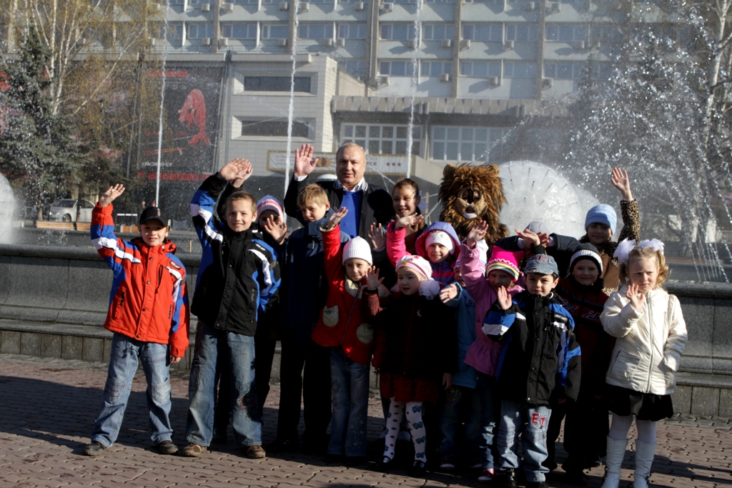 Сегодня Глава города Пётр Пимашков вместе с детьми из городского социального центра «Забота» открыл сезон работы городских фонтанов. В 9.00 заработал главный фонтан города на верхнем ярусе Театральной площади.