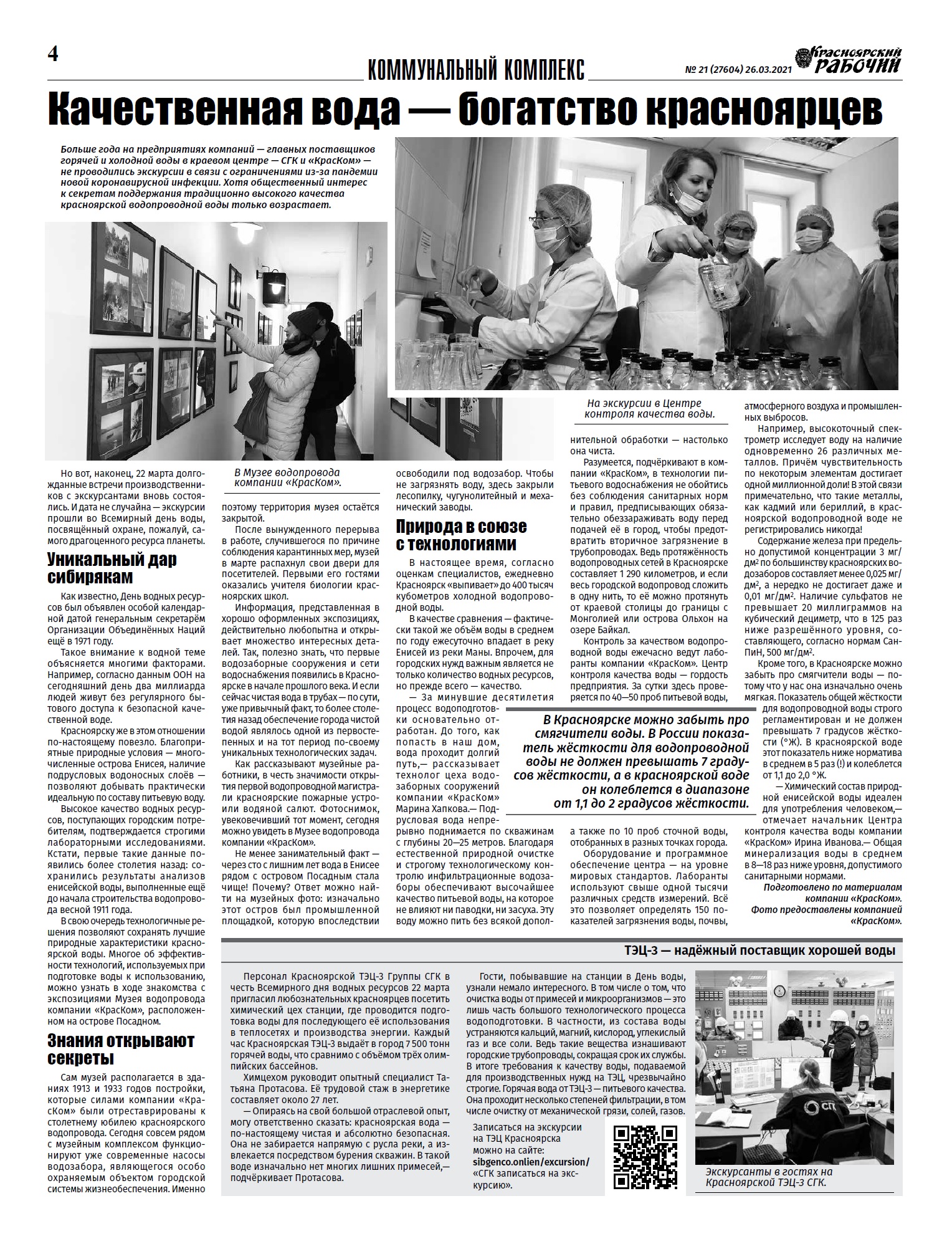Больше года на предприятиях компаний — главных поставщиков горячей и холодной воды в краевом центре — СГК и «КрасКом» — не проводились экскурсии в связи с ограничениями из-за пандемии новой коронавирусной инфекции. Хотя общественный интерес к секретам поддержания традиционно высокого качества красноярской водопроводной воды только возрастает.