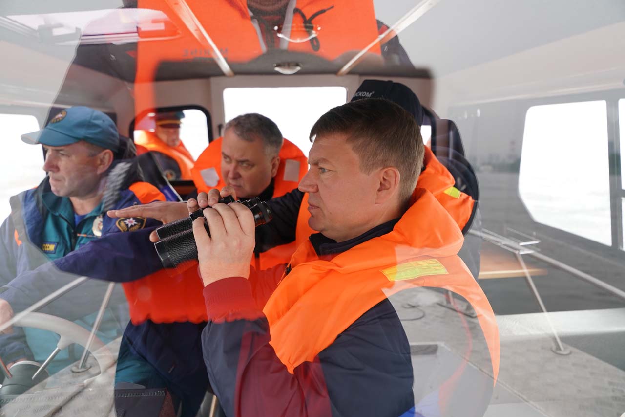Мероприятие началось с водной инспекции по акватории Енисея на катере МЧС. Вместе с главой ГУ МЧС по краю Игорем Лисиным, гендиректором «КрасКома» Олегом Гончеровым и руководителями оперативных служб глава города осмотрел прибрежные участки, которые попали в зону подтопления, а также территории водозаборных сооружений.