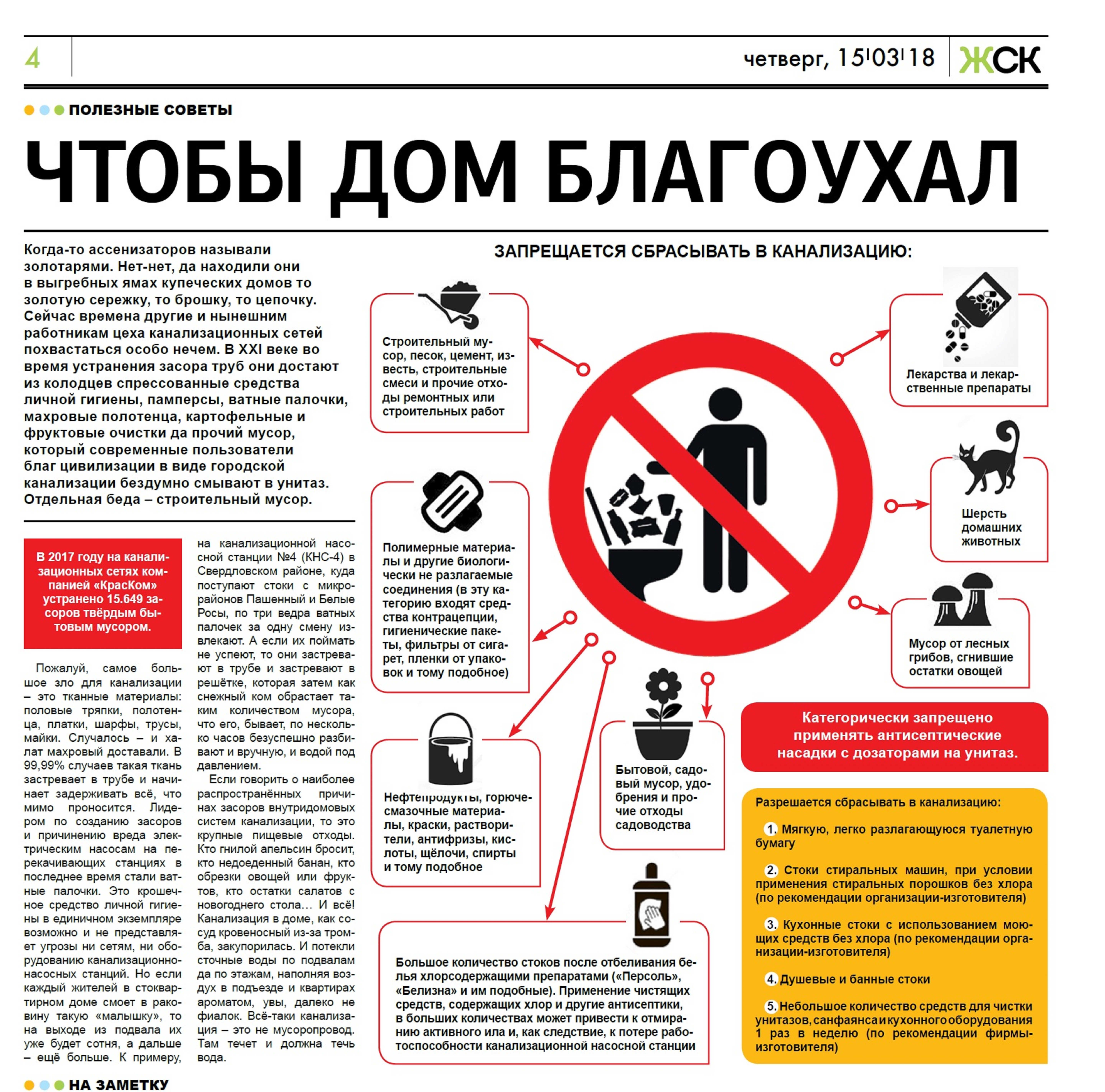 В 2017 году на канализационных сетях компанией «КрасКом» устранено 15.649 засоров твёрдым бытовым мусором.