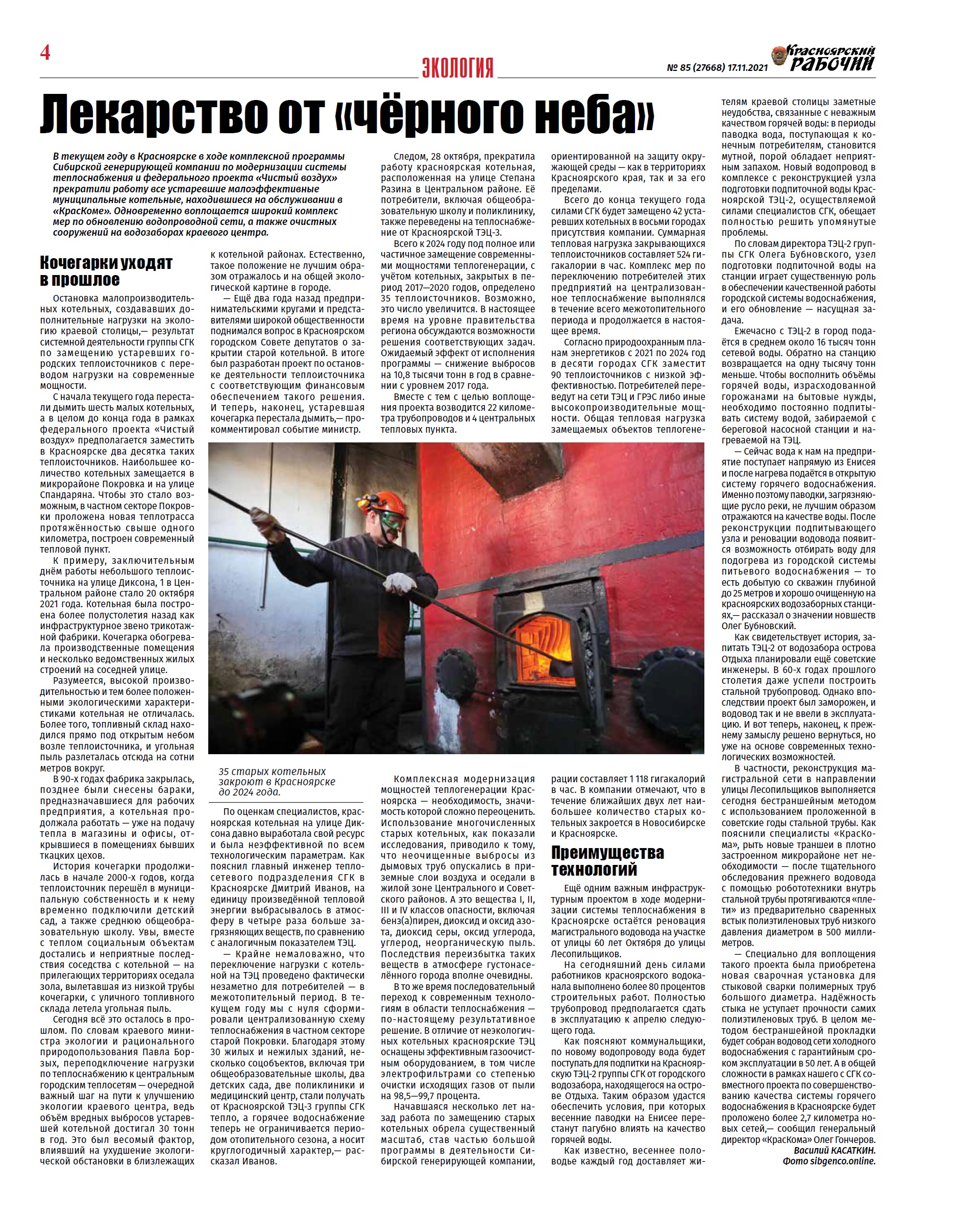 — Ещё два года назад предпринимательскими кругами и представителями широкой общественности поднимался вопрос в Красноярском городском Совете депутатов о закрытии старой котельной. В итоге был разработан проект по остановке деятельности теплоисточника с соответствующим финансовым обеспечением такого решения. И теперь, наконец, устаревшая кочегарка перестала дымить,— прокомментировал событие министр.