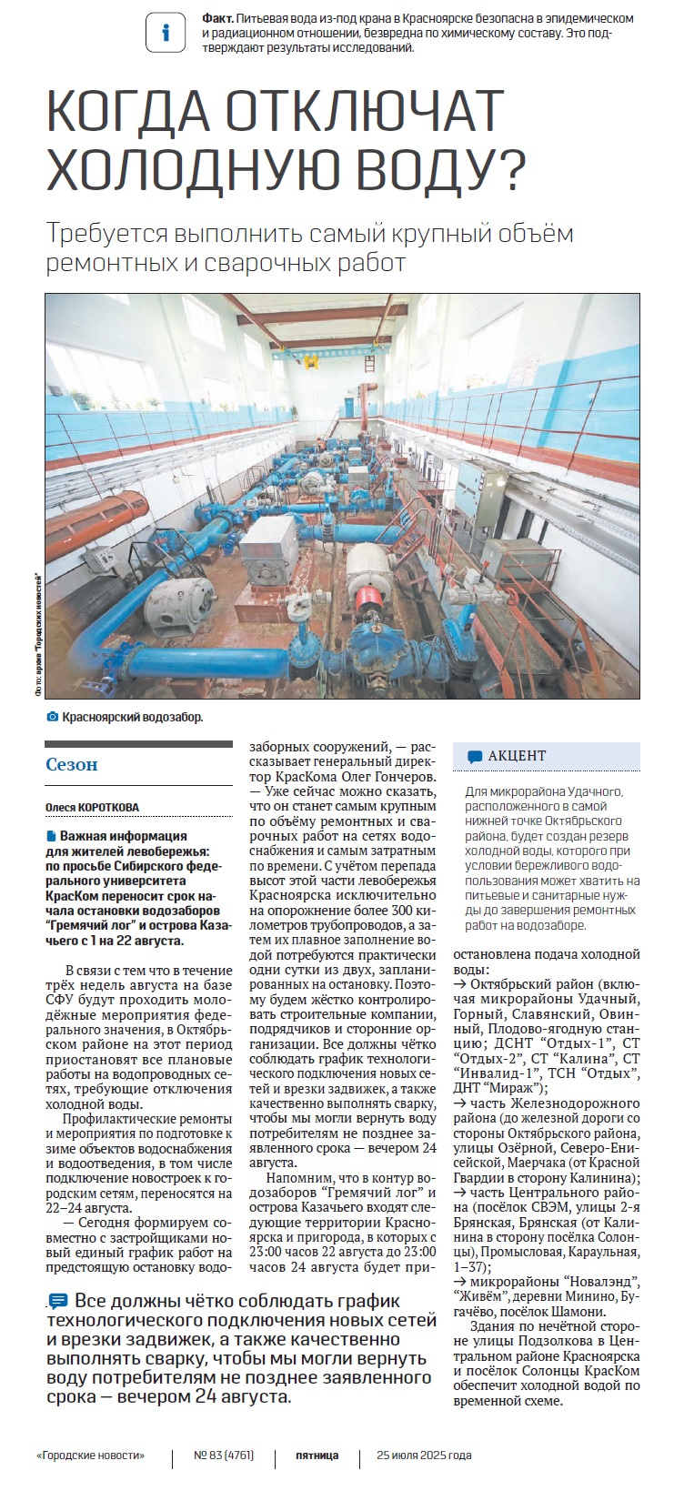 Читать газету «Городские новости» № 83 (4761) 25 июля 2025 года