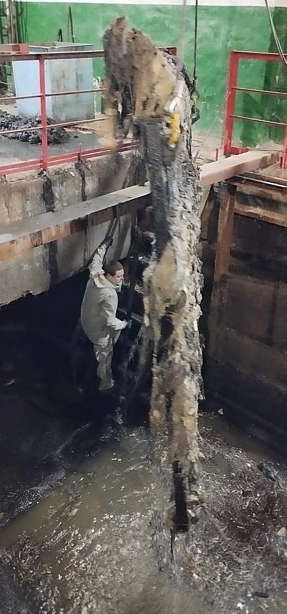 Несколько часов сотрудники КНС доставали переплетенный мусор из коллектора, чтобы комок тряпья не засосало в перекачивающий насос, а станция не остановилась.